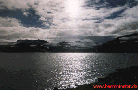 Ein netter Schiffahrtskapitän nahm uns mit zurück nach Flam, wo wir mit der legendären Flambahn die 1089 Höhenmeter erklimmen wollten. Doch es sollte anders kommen ... Auf der Fahrt machte Michael den Vorschlag doch aufgrund ders päten Stunde auf dem halben Wege wieder den Zug zu verlassen und den Lagerplatz „St. Louis" vom Vortag für das Nachtlager aufzusuchen. So standen wir auf dem idyylischen Fleck, der uns bereits am Vortag eingeladen hatte. Einige wollten sofort die Kohte aufbauen - die Schottlandfahrer Erik & Michael winkten aus den Midgeserfahrungen des Vorjahres ab. So wurde zuerst zu Abend gegenssen. Wenige Minuten später wurde unsere Roverunde Camelot von einer Horder wilder kleiner blutrünstiger Bestien angegriffen. Koch Markus schrie: „Los, beeilt Euch -Packt zusammen!!! Ich will WEG!!!!" Mit Tunfischdose und Apriköschen in der Hand ergriffen wir blitzartig die Flucht. Es sah schon chaotisch aus.