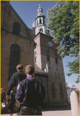 Währenddessen versuchten FuBu und Erik einen Schlafplatz in einer Jugendherberge zu organisieren. Michael konnte die Meldung machen, dass wir in einer Stunde nach einem zweiten Anruf, einen Schlafplatz bekommen würden. Doch auch der zweite Anruf vertörstete uns wider für zwei Stunden. Währenddessen hatte Erik den gewünschten Erfolg. So warteten wir bis 6:00 Uhr am Bahnhof und erfuhren von den norwegischen Pfadfidnern, daß leider kein Platz mehr im Zentrum frei ist. Also gingen wir wieder auf Erkundung durch das lebendige Bergen. Wir führten mehrere Gespräche in vielen Büros von Herbergen und keiner schien mehr als 5 Betten frei zu haben. Die schöne alte Fischerstadt mit ihrem eigenen Flair schien von Touristen aus den Nähten zu platzen. In einer Jugendherberge, die zuvor Interrailer beherbergte, wurden wir fündig und konten für satte 25 DM pro Nacht ein Bett bekommen. Wir stellten uns unter einer Jugendherberge ein max. 15 Personenzimmer vor, in dem wir ungestört und in Ruhe Kraft auftanken konnten.